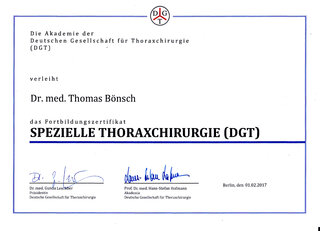 Die Thoraxchirurgie am Städtischen Klinikum Dessau ist eine eigenständige Abteilung der Klinik für Allgemein-, Viszeral- und Thoraxchirurgie und steht unter der Leitung von Oberarzt Dr. med. Thomas Bönsch.