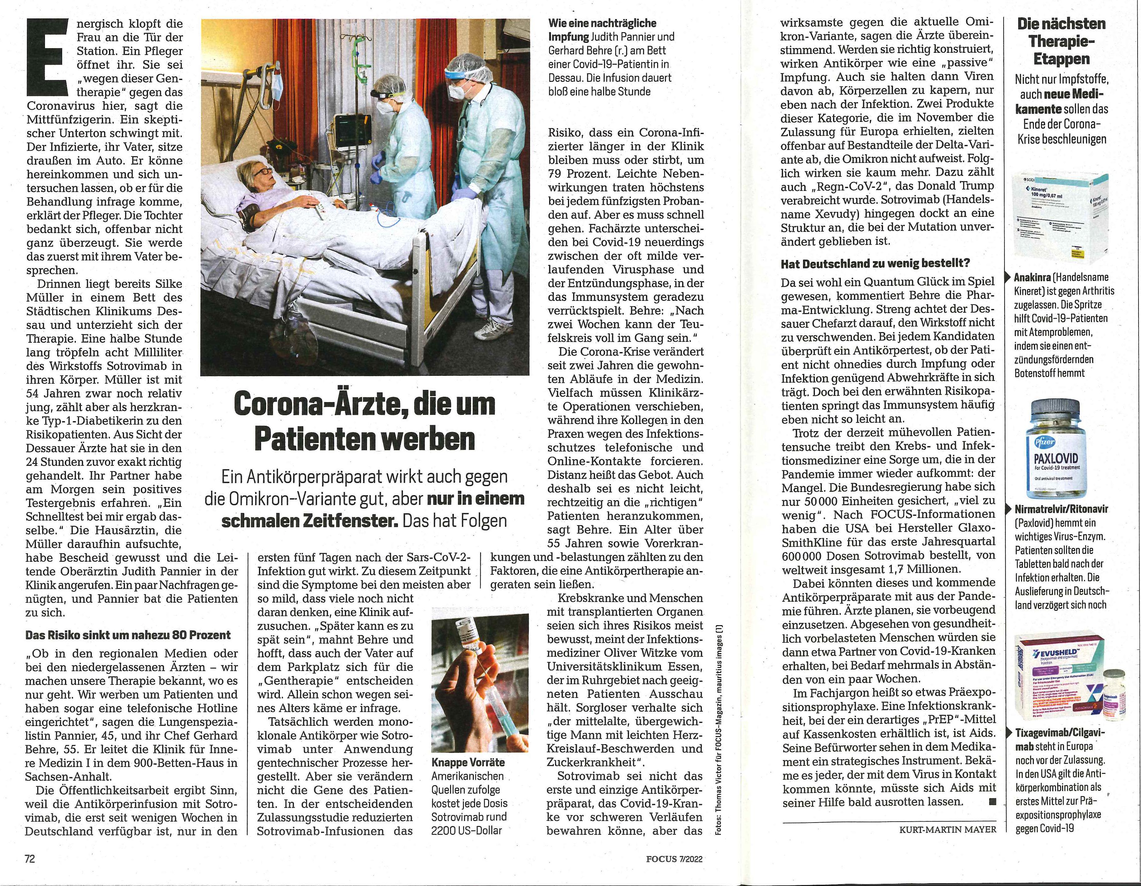 - Focus (Online) vom 3. Dezember 2022: Vier neue Covid-Medikamente könnten uns 2022 helfen, die Pandemie zu beenden