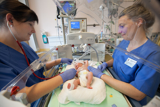 Die neonatologische Intensivtherapie dieser Frühgeborenen und kranker Neugeborenen erfolgt auf unserer neonatologischen und pädiatrischen Intensivstation mit 12 Intensivpflegeplätzen: