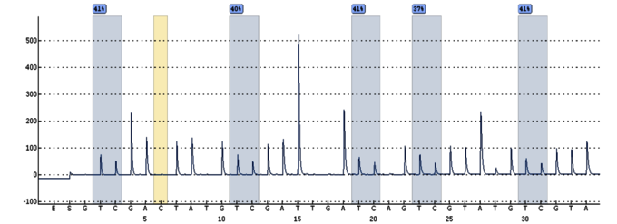 Die Sanger-Sequenzierung basiert auf dem Synthesekettenabbruch-Prinzip (Didesoxy-Methode). Über Kapillarelektrophorese und Laserdetektion wird der sukzessive Einbau der Desoxynucleotide (Adenin, Guanin, Cytosin, Thymin) während der enzymatischen DNA-Synthese bestimmt.