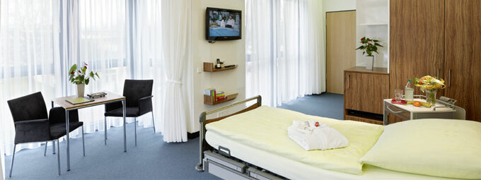 Auf Wunsch können Patienten auch Angehörige mit im Zimmer wohnen lassen. Dank des variablen Komfortsessels ist dies mit nur wenigen Handgriffen möglich. Außerhalb der Zimmer auf der Hotelstation stehen Patienten und Besuchern die Lounge-Bereiche für Entspannung, Lesen und Unterhaltung zur Verfügung.