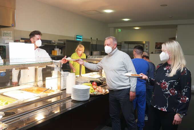 Ob Sie Vollkost oder eine bestimmte Diät erhalten, entscheidet Ihr Arzt. Entsprechend Ihrer Kostform können Sie unter verschiedenen Zutaten wählen. Auf den Stationen stehen jederzeit Getränke und Obst bereit.