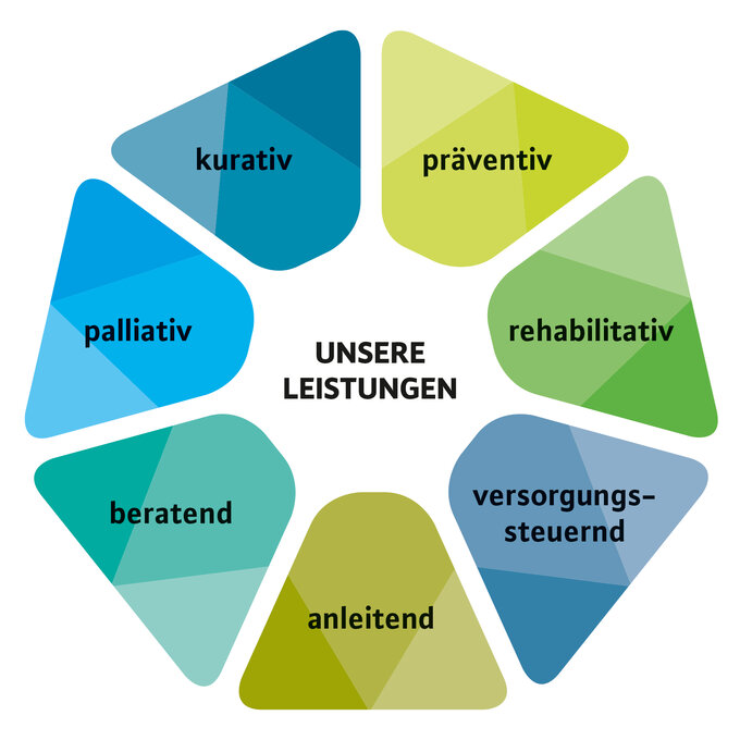 Unsere Mitarbeiter im Pflegedienst sind Teil eines breit aufgestellten und vernetzten Teams, das gut über Professions- und Versorgungssektoren hinweg zu arbeiten versteht. Indem die Beteiligten die jeweilige Fachlichkeit des anderen anerkennen, die eigenen Kompetenzen situationsangemessen einbringen, flexibel Schnittstellen bewältigen und bei Bedarf weitere Expertise einbeziehen, wird eine Pflege auf Expertenniveau ermöglicht. Darüber hinaus kommen in den einzelnen Arbeitsbereichen differenzierte und zielgruppenspezifische Pflegekonzepte zur Anwendung.