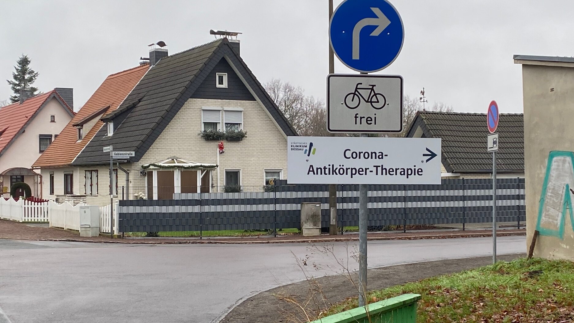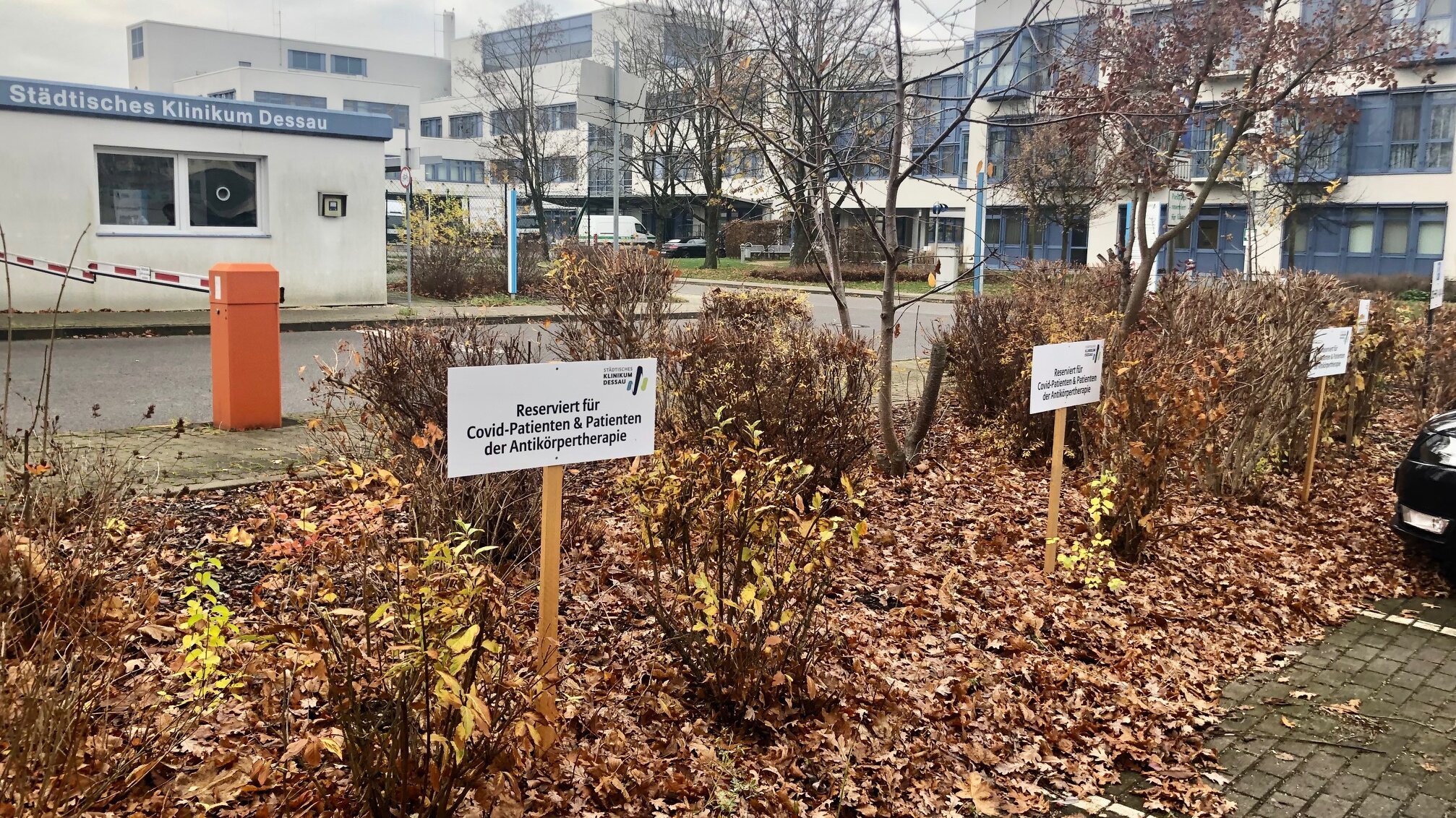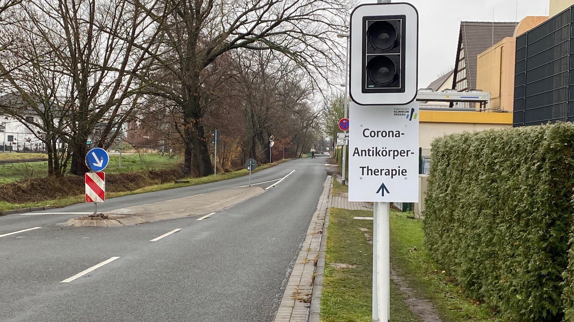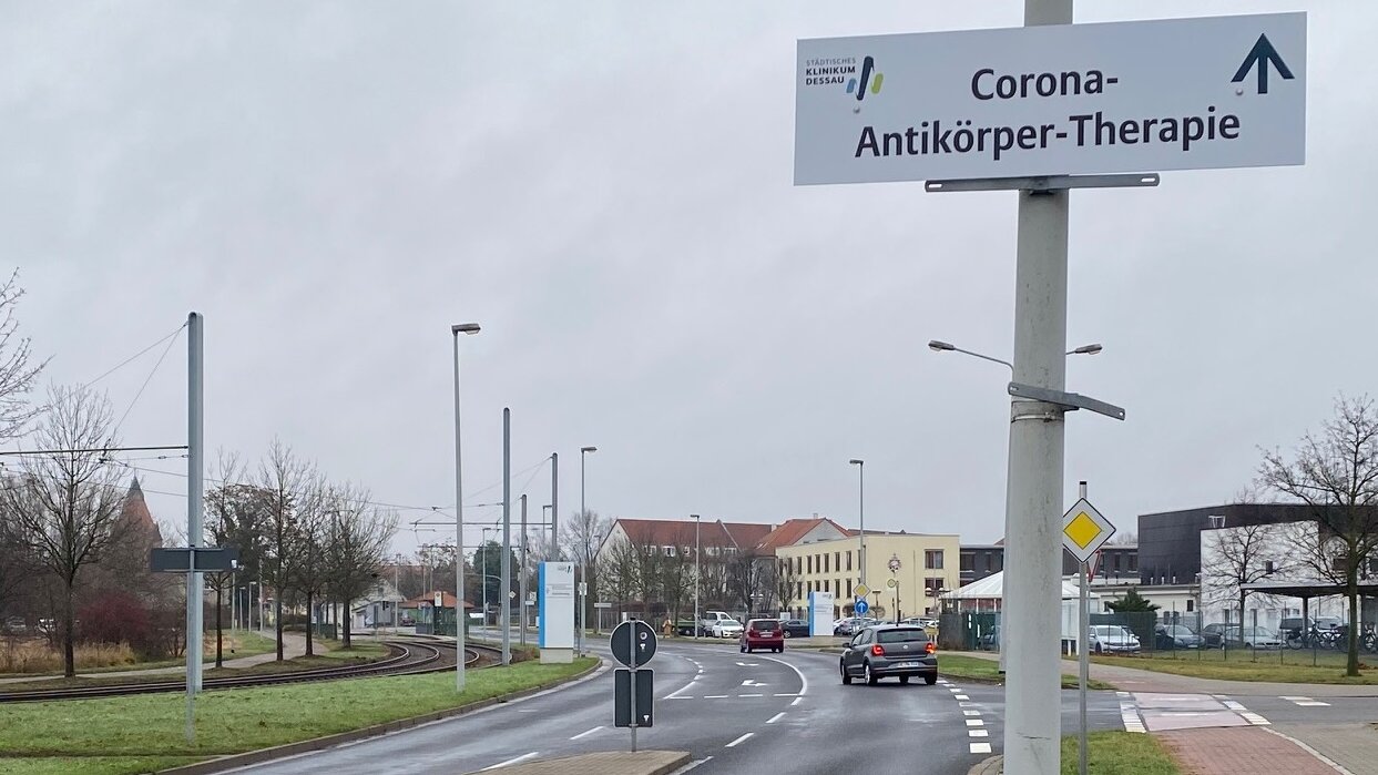 Mittlerweile wurden im Städtischen Klinikum Dessau fast 400 Covid-Patienten mit monoklonalen Antikörpern gegen SARS-CoV-2 behandelt. Mehr als die Hälfte waren ambulante Patienten. Um den Zustrom positiver Covid-Patienten zur Antiköpertherapie besser zu steuern, wurde die Zufahrt zur Therapiestation nun auch außerhalb des Klinikums ausgeschildert.