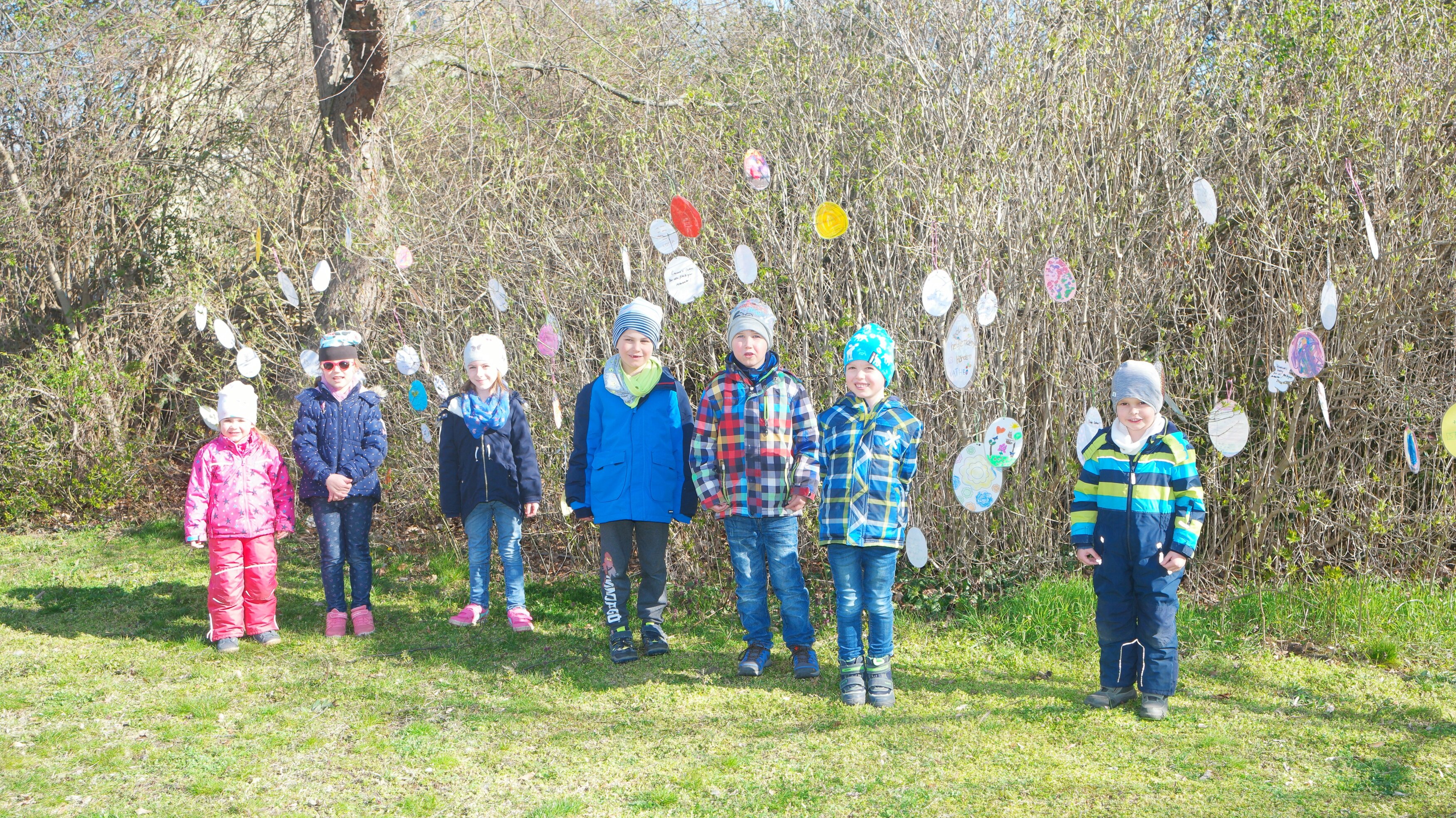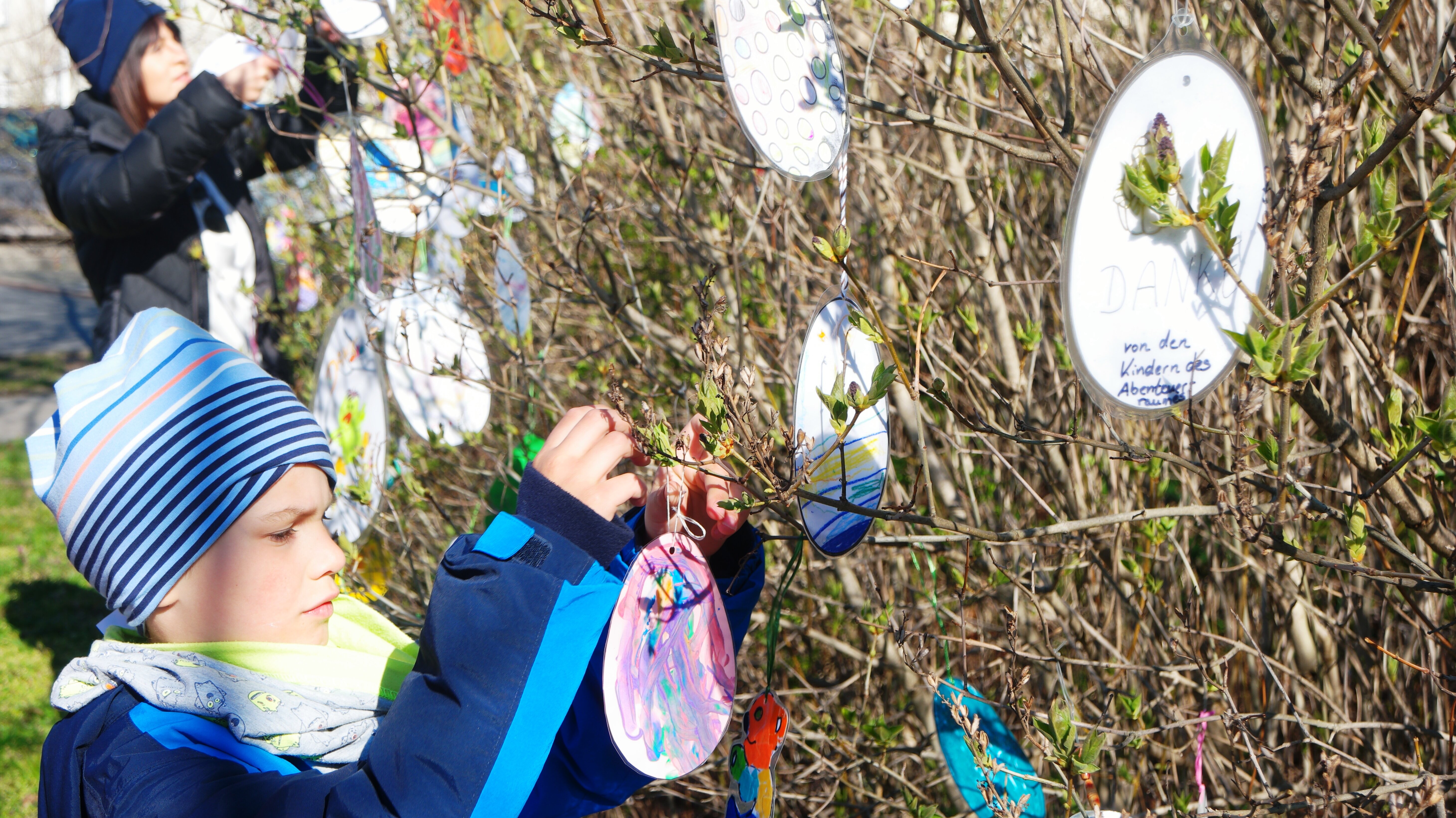 Buntes Treiben: In den Büschen am Besucherparkplatz flattern seit heute rund 80 Ostereier im Wind. Gemalt von Kindern der Kita - und zwar nicht nur denen aus der Notbetreuung, sondern auch denen, die seit zwei Wochen zu Hause bleiben müssen. "Wir wollten mit unserer Mal-Aktion auch eine Verbindung für unsere Kinder schaffen, die durch den Coronavirus plötzlich auseinandergerissen worden sind", so Sylvia Richter, Leiterin der klinikeigenen Kindertageseinrichtung "Mäuseland".