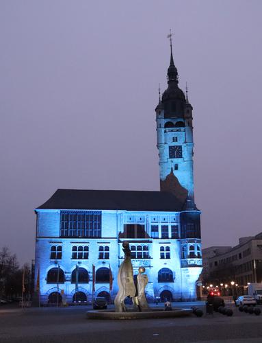 Auch die Stadt Dessau-Roßlau setzt ein Zeichen. Zum "Tag der Seltenen Erkrankungen" erstrahlt das Rathaus in blau. Besonders in Covid-Zeiten soll damit auf die Anliegen der von Seltenen Erkrankungen Betroffenen aufmerksam gemacht werden. Ein besonderer Dank geht an das Anhaltisches Theater Dessau für die Lichtinstallation.