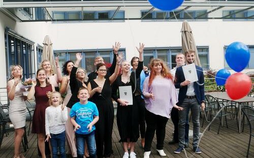 So eilig wie heute hatten es die bei der Übergabe der Abschlusszeugnisse schon zur Tradition gewordenen Luftballons lange nicht mehr, die Wünsche der frisch exmatrikulierten elf Gesundheits- und Krankenpfleger gen Himmel zu tragen. Sturmtief „Mortimer“ machte es möglich und zerrte vorher schon eifrig an den dünnen Bändchen.