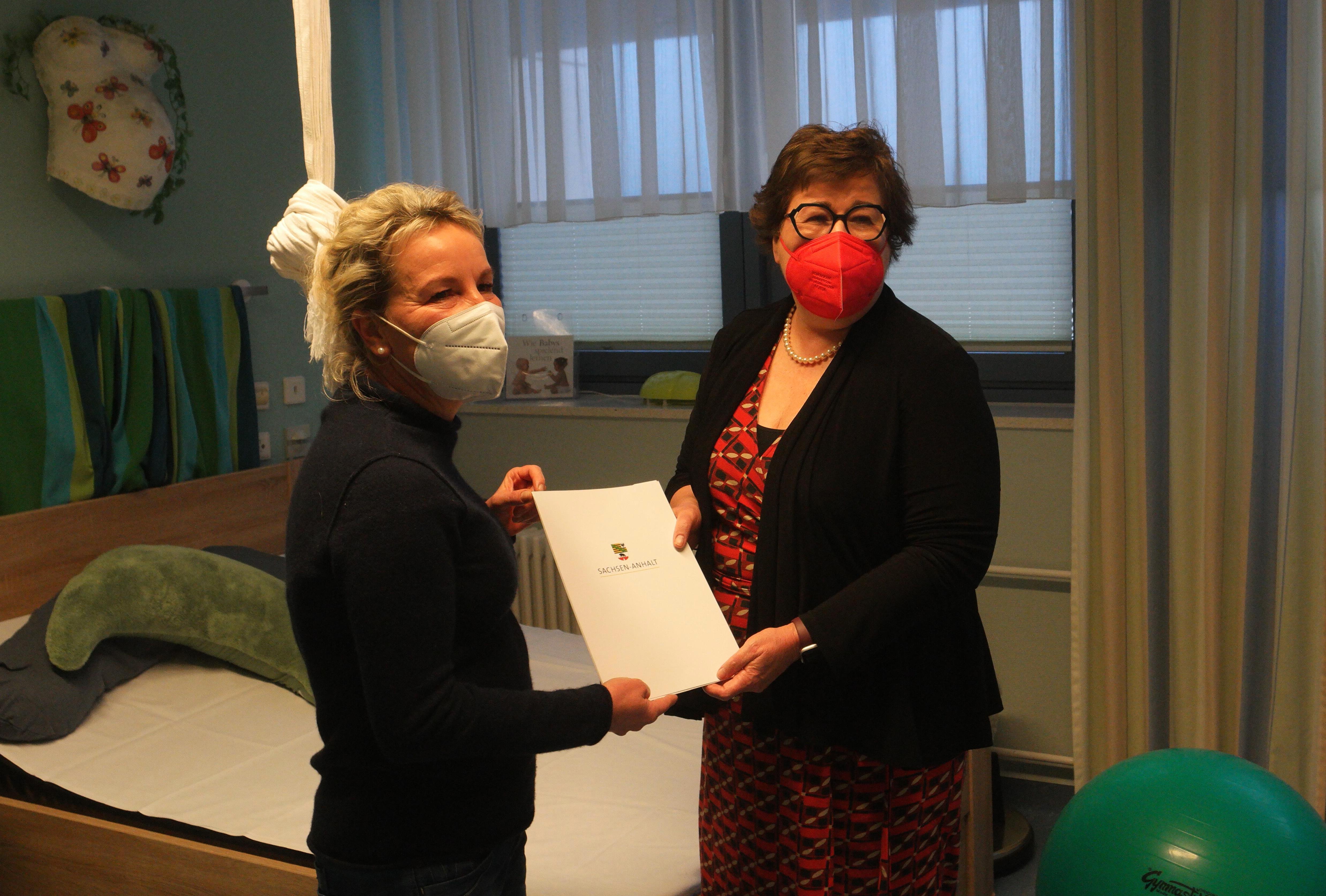 Als eines von 25 Krankenhäusern in Deutschland – davon lediglich drei in den Neuen Bundesländern – wird das Städtische Klinikum Dessau einen hebammengeleiteten Kreißsaal in seiner Klinik für Frauenheilkunde und Geburtshilfe einrichten. Gefördert wird das Vorhaben mit rund 340.000 Euro vom Land Sachsen-Anhalt. Sozialministerin Petra Grimm-Benne sagte heute bei der Übergabe im Klinikum: „Wir wollen die Arbeitsverhältnisse von Hebammen verbessern, die natürliche Geburt stärken und der steigenden Anzahl von Kaiserschnittgeburten im Land entgegenwirken.“