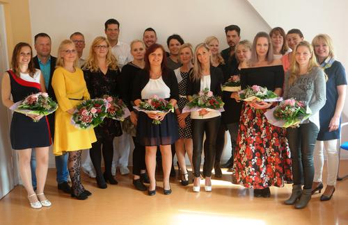Ob der guten Noten gab es bei der heutigen Verabschiedung der Teilnehmer des Fachweiterbildungskurses „Intensiv- und Anästhesiepflege“ nur zufriedene und strahlende Gesichter: Alle 16 Schüler des zweijährigen Kurses fanden auf Ihrem Zeugnis die Abschlussnote 1 oder 2. Dr. med. Stefan Breuer, Chefarzt der Klinik für Anästhesieologie, Intensiv- und Schmerztherapie, gratulierte und betonte: „Ihr Bibbern vor der Prüfung war nicht wirklich notwendig.“ Und weiter gab er den Fachpflegern mit auf den Weg: „Wenn Sie jetzt an Ihren Arbeitsplatz zurückkehren, verstecken Sie sich nicht, sondern bringen Sie Ihr Wissen ein.“