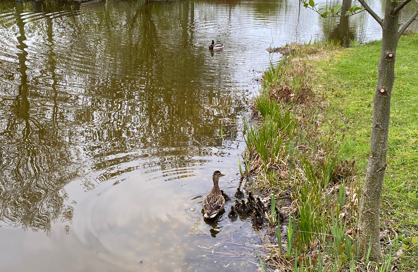 Zu Fuß ging es dann zum Patientenpark. Vor Ort angekommen, wartete schon der Erpel mit Geschnatter auf seine Familie. Die Enten-Mama wurde dann samt ihrer Küken wieder in die Freiheit entlassen und schwamm ohne Dank davon.
