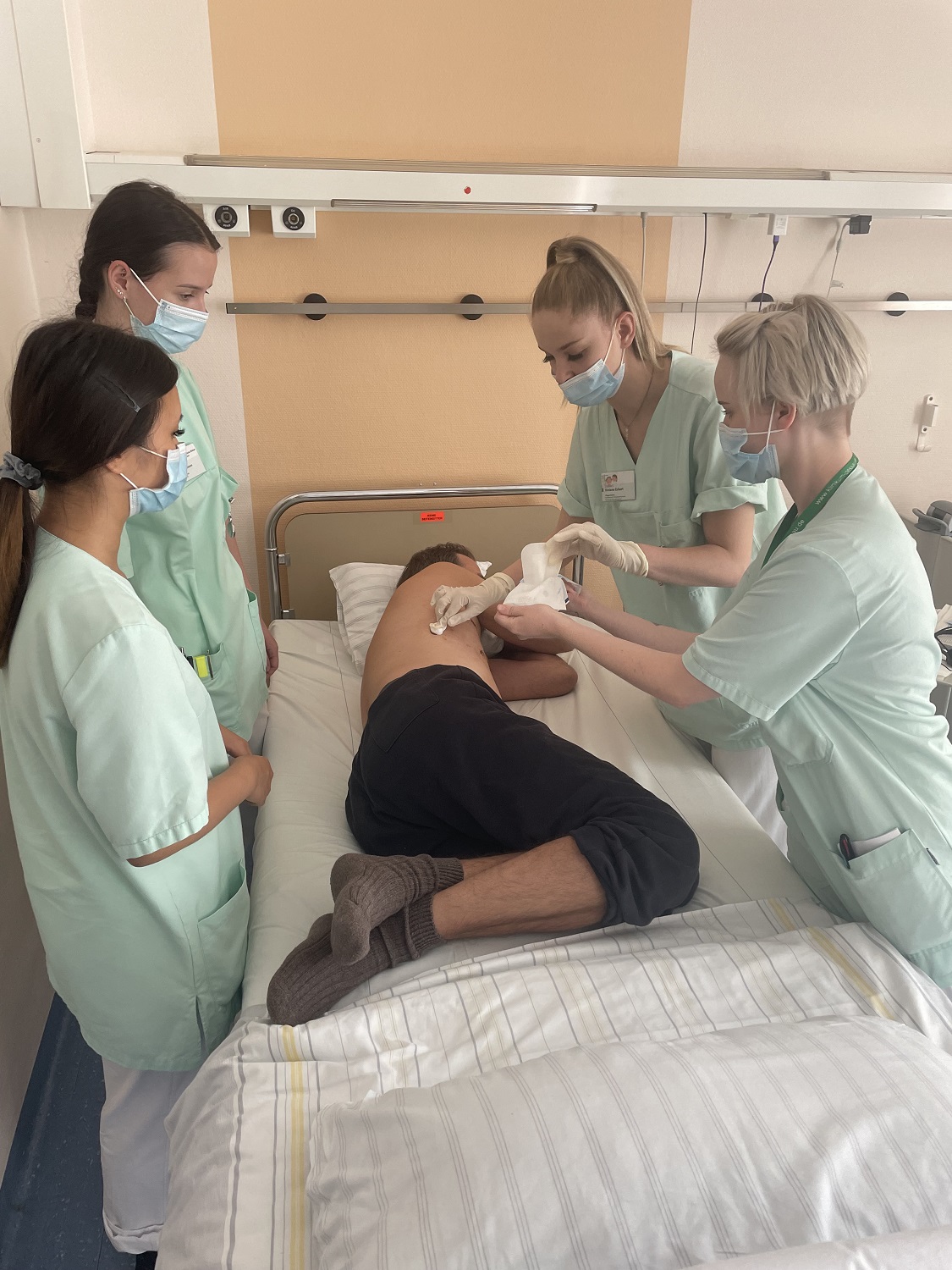 Die praktische Prüfungsvorbereitung des Kurses 18/O der Gesundheits- und Krankenpflegeausbildung läuft auf Hochtouren.