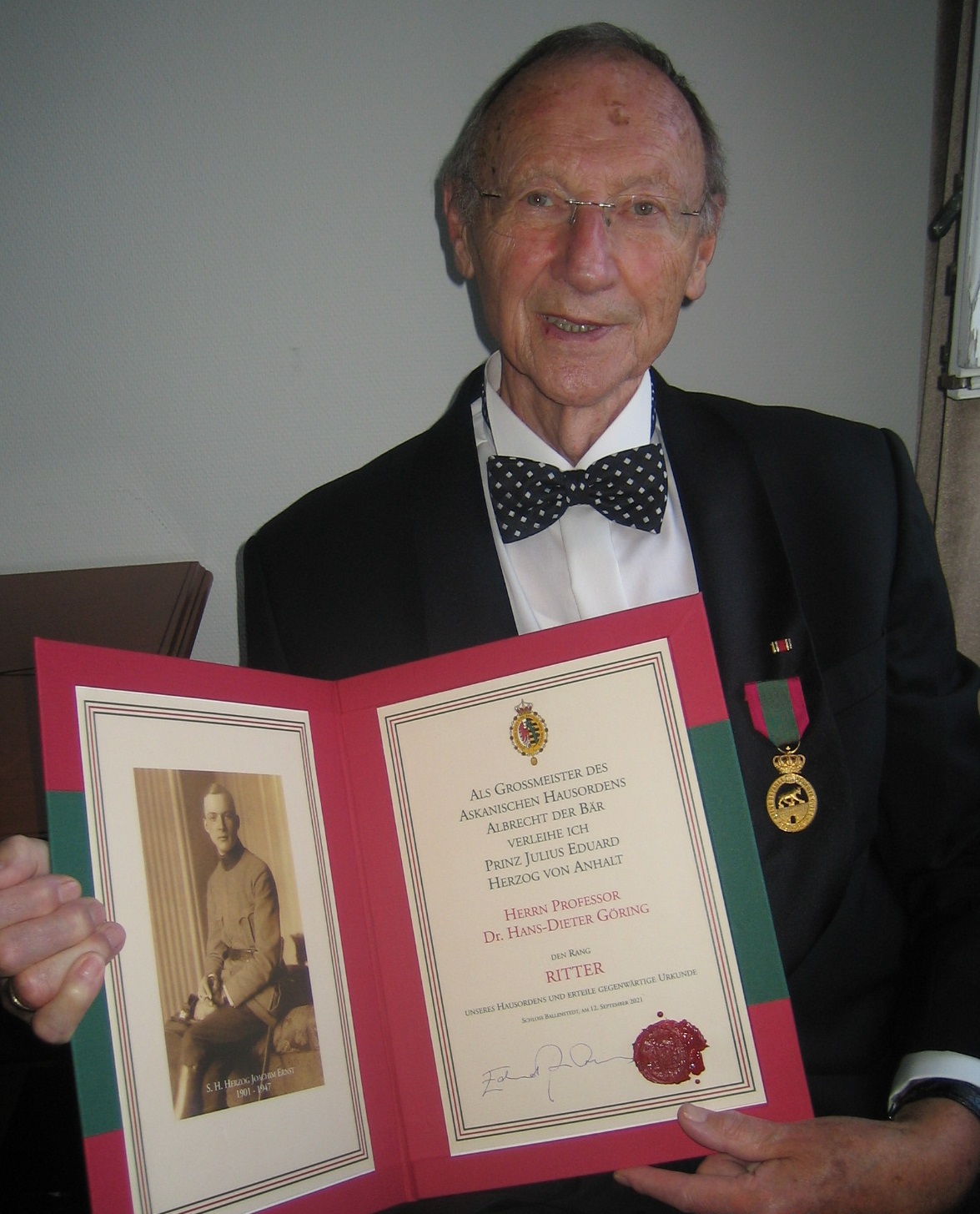 Dem ehemaligen Chefarzt der Hautklinik des Städtischen Klinikums Dessau und Ehrenbürger der Stadt Dessau-Roßlau, Prof. Dr. med. habil. Hans-Dieter Göring, ist jetzt für seine wissenschaftlichen Leistungen und ärztliches Wirken der Rang eines Ritters des Askanischen Hausordens „Albrecht der Bär“ verliehen worden, unter anderem für die Untersuchungen der verstorbenen Mitglieder der anhaltischen Herzogsfamilie (Askanier). Die Auszeichnung erhielt Prof. Göring aus den Händen von Prinz Julius Eduard Herzog von Anhalt.