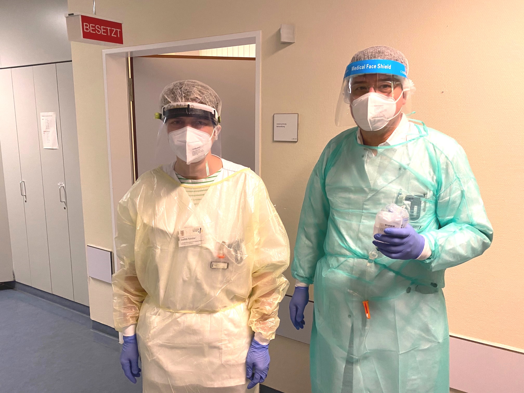 Lebensentscheidend ist die Zeit zwischen Diagnose und dem Auftreten schwerer Symptome. „Ziel muss es sein, innerhalb der ersten sieben Tage nach Beginn der Infektion das Eindringen des Coronavirus in die Zellen zu verhindern und dadurch auch das Risiko eines schweren Verlaufs zu minimieren“, so Prof. Dr. med. Gerhard Behre, Chefarzt der Klinik für Innere Medizin I.